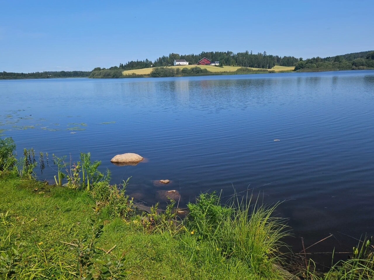 Rett utenfor døren starter turmulighetene. Skogsstier, åpne marker og små vann gir naturlige pauser og gode opplevelser gjennom dagen. Mange hunder faller raskt til ro her; de får utforske, snuse og bevege seg i sitt eget tempo, uten press og uten stress. Det landlige miljøet gjør at skuldrene senker seg — både hos hunder som er trygge fra før, og hos de som trenger litt ekstra tid for å lande.