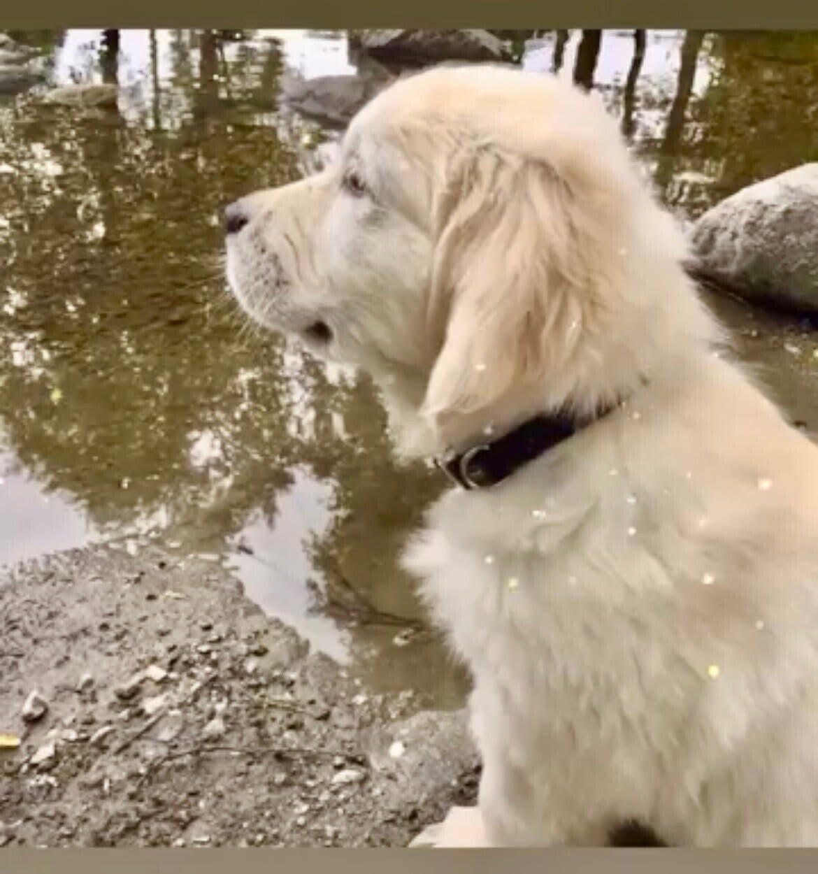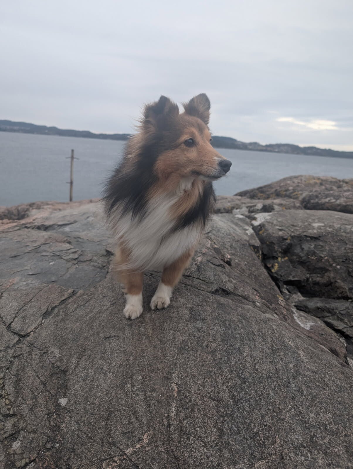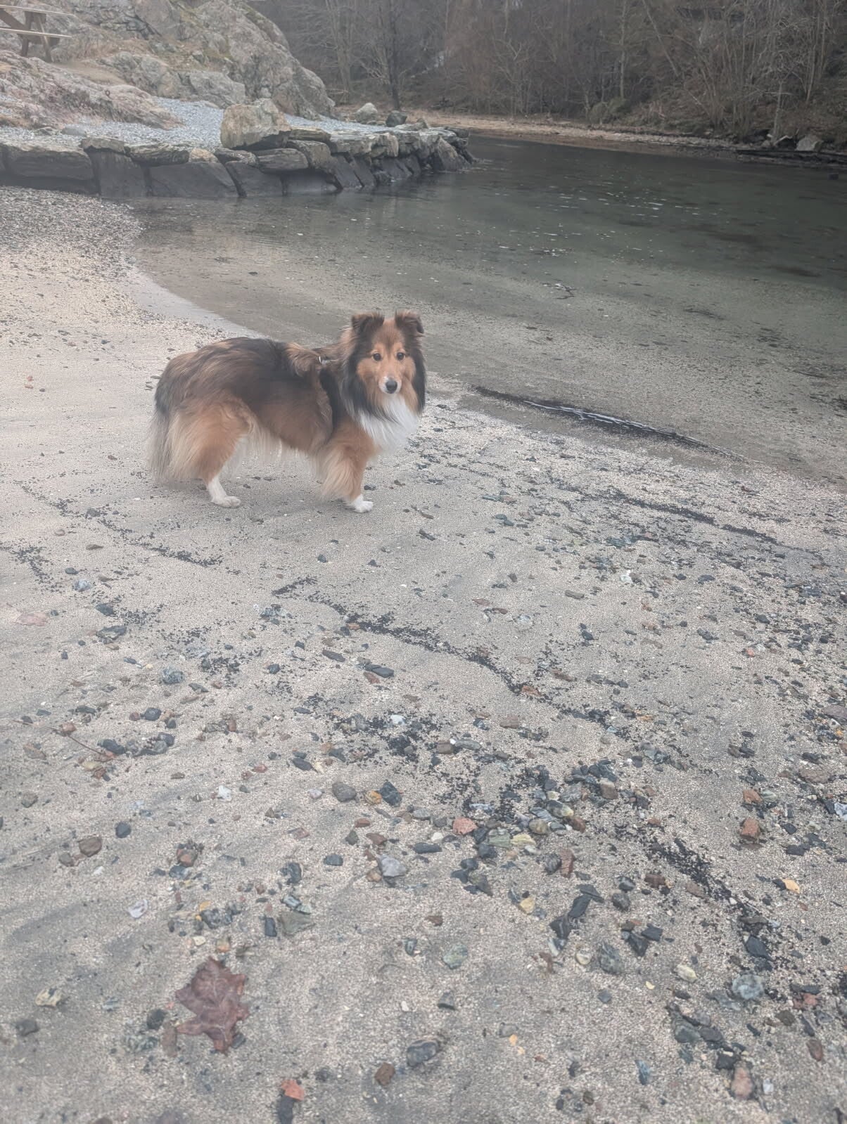 Et trygt øyeblikk i strandkanten – ro, nysgjerrighet og naturlig tilstedeværelse i eget tempo.